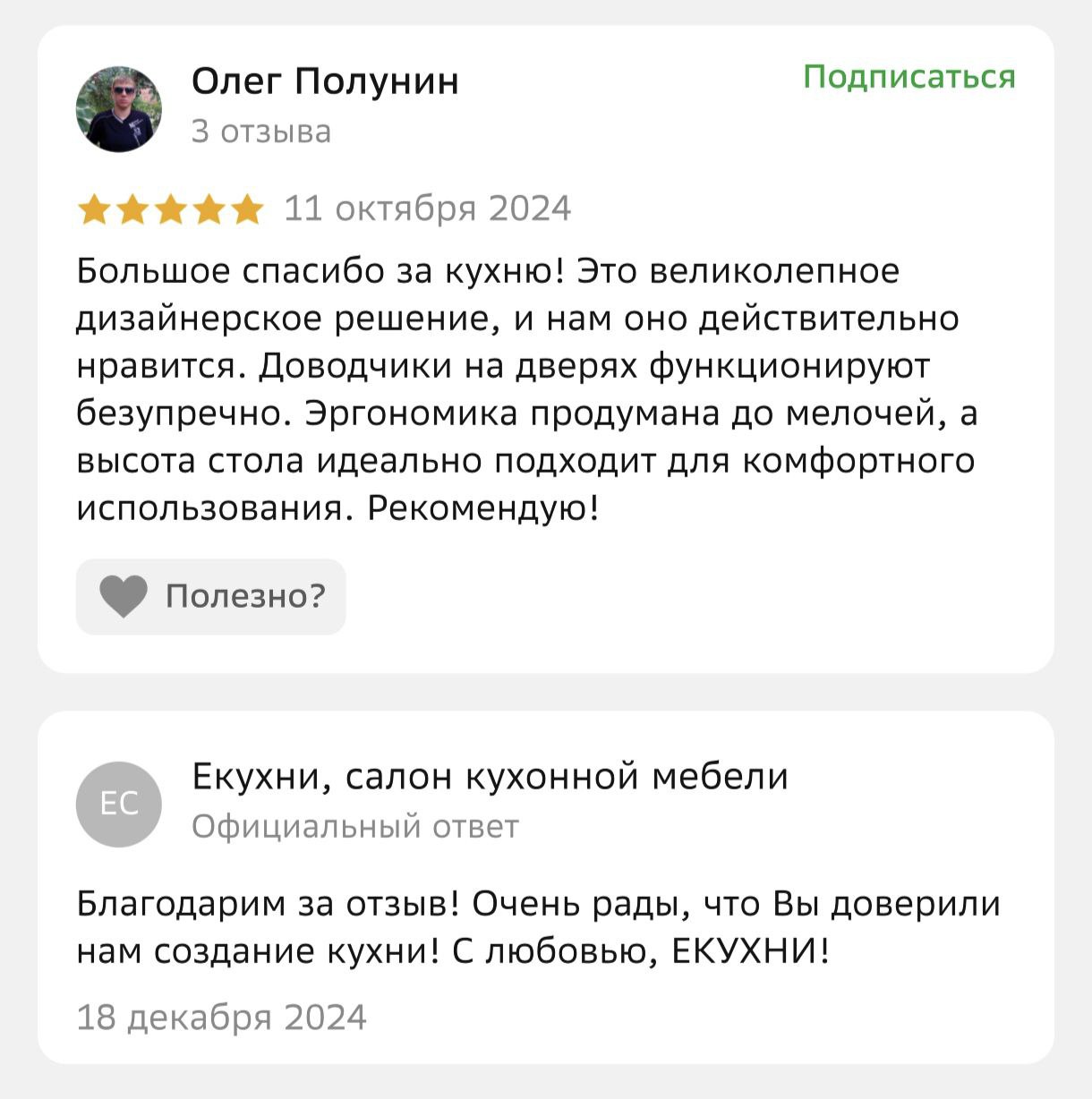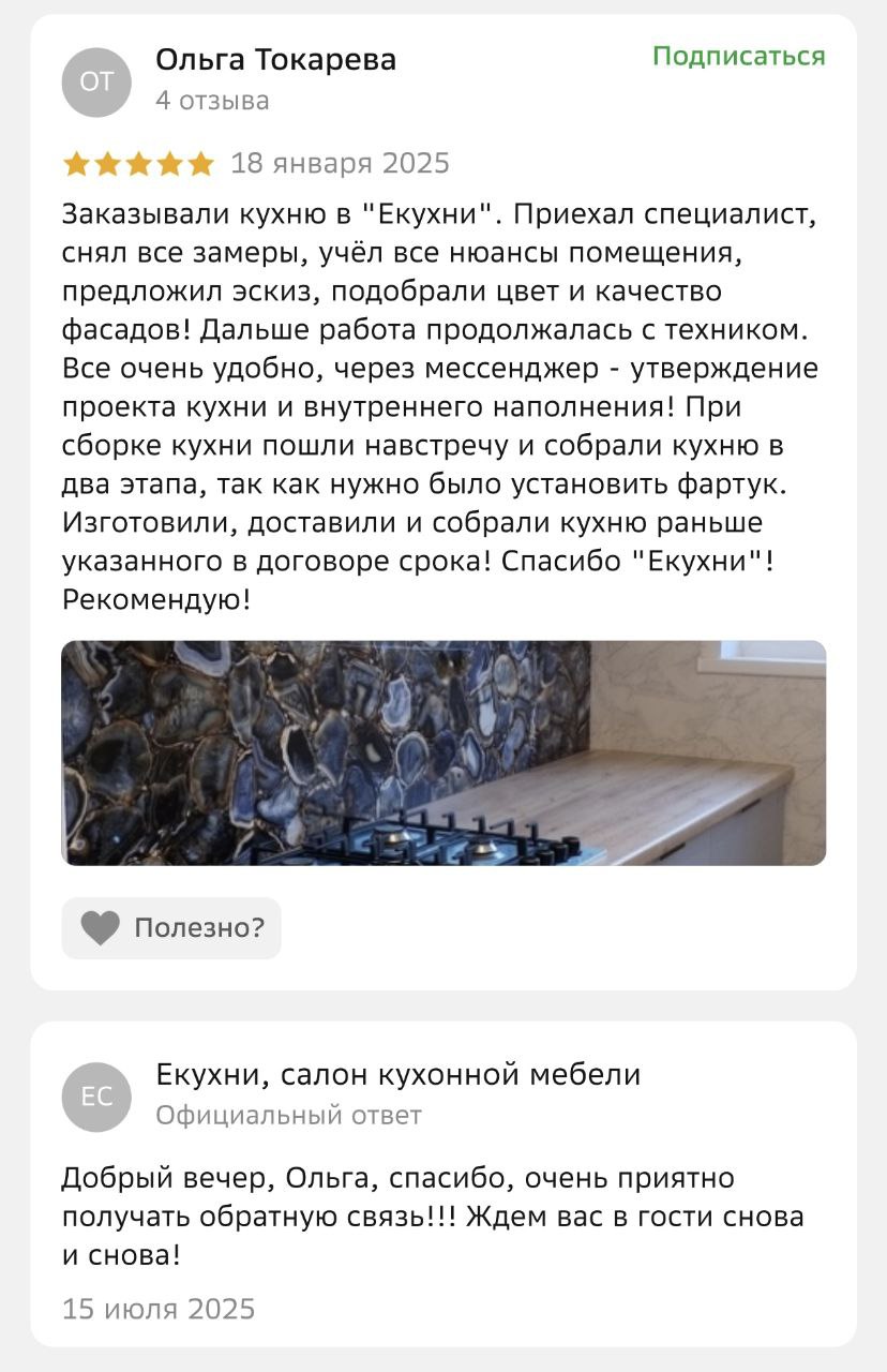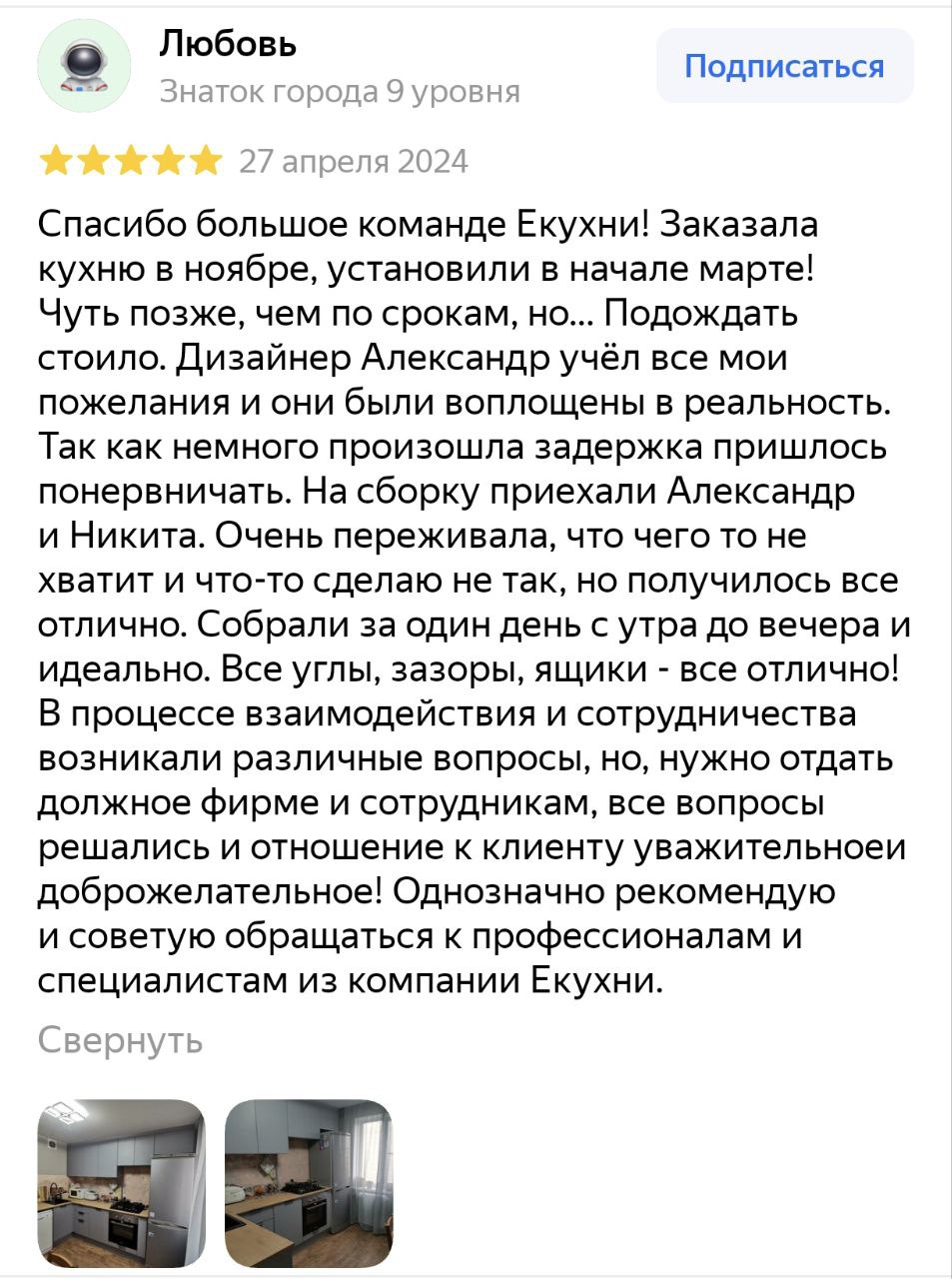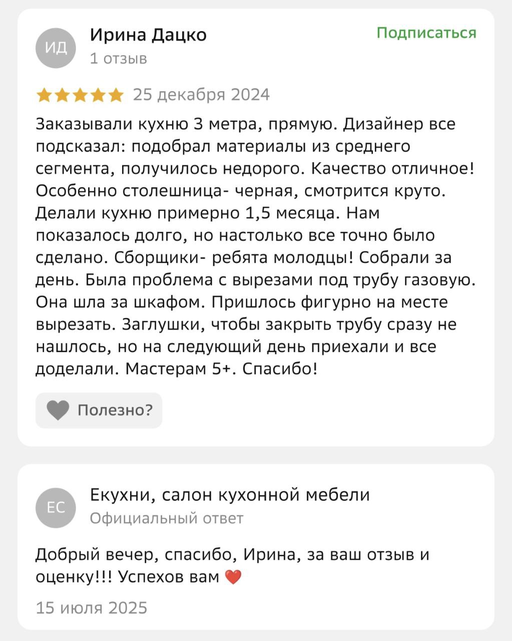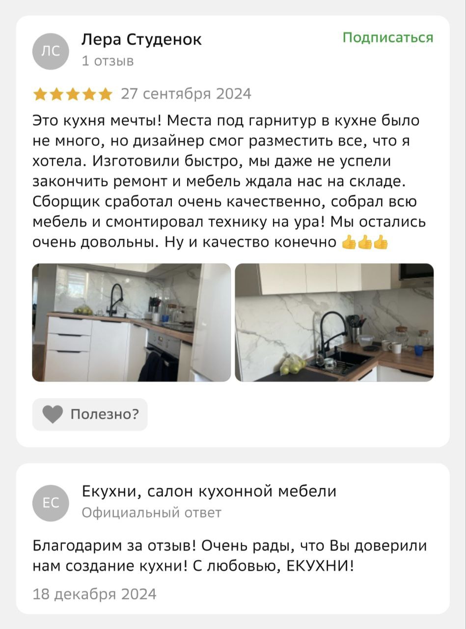 Наша семья будет рада каждому, кто обратится в компанию Екухни и станет нашим клиентом!
