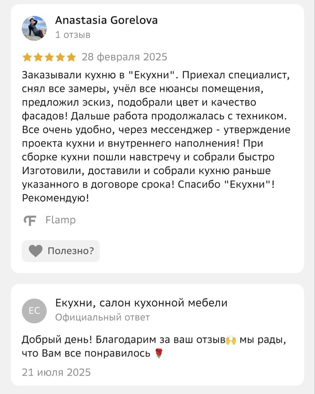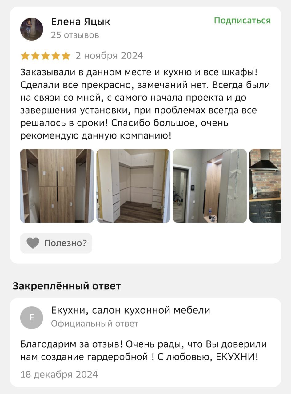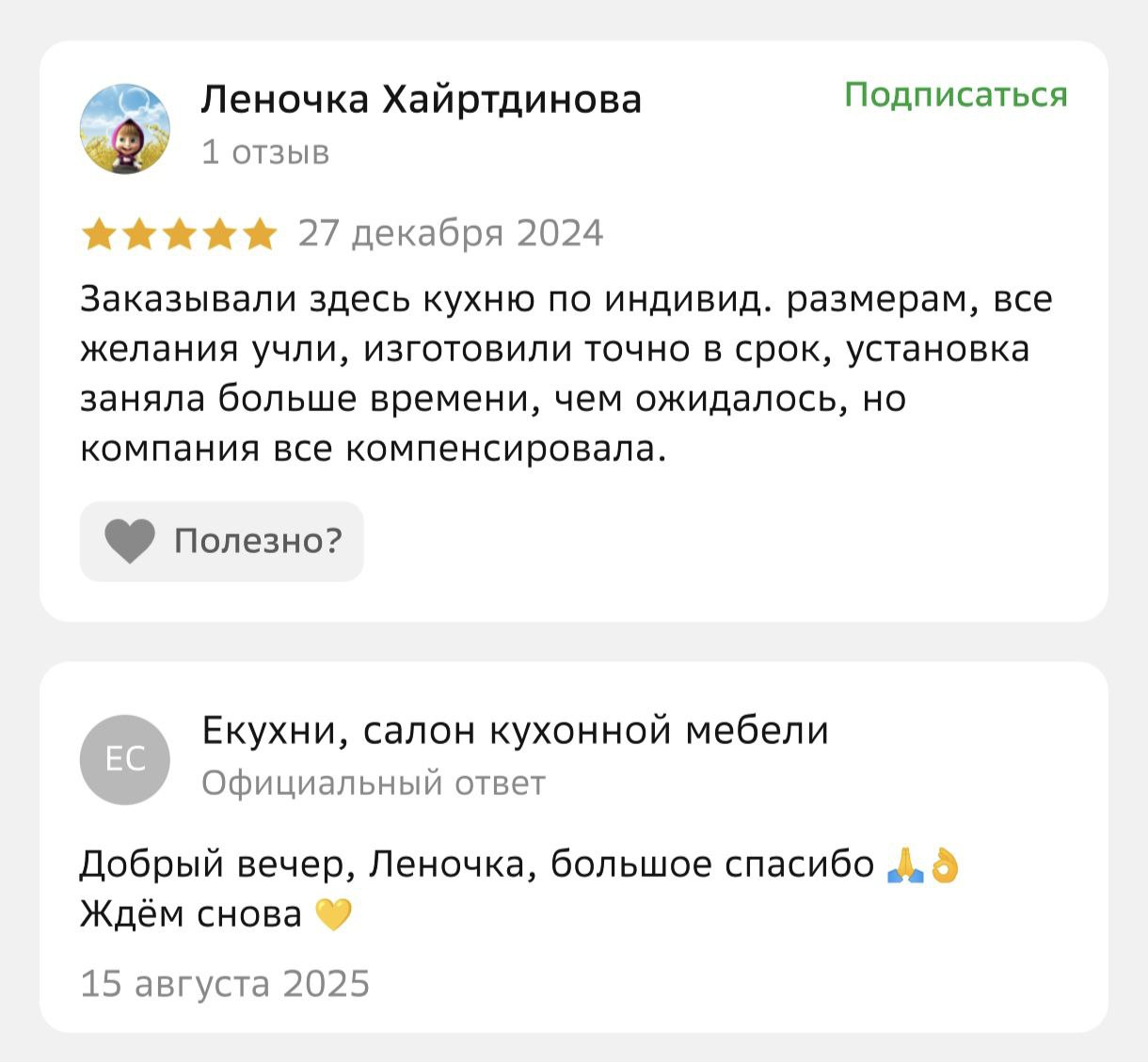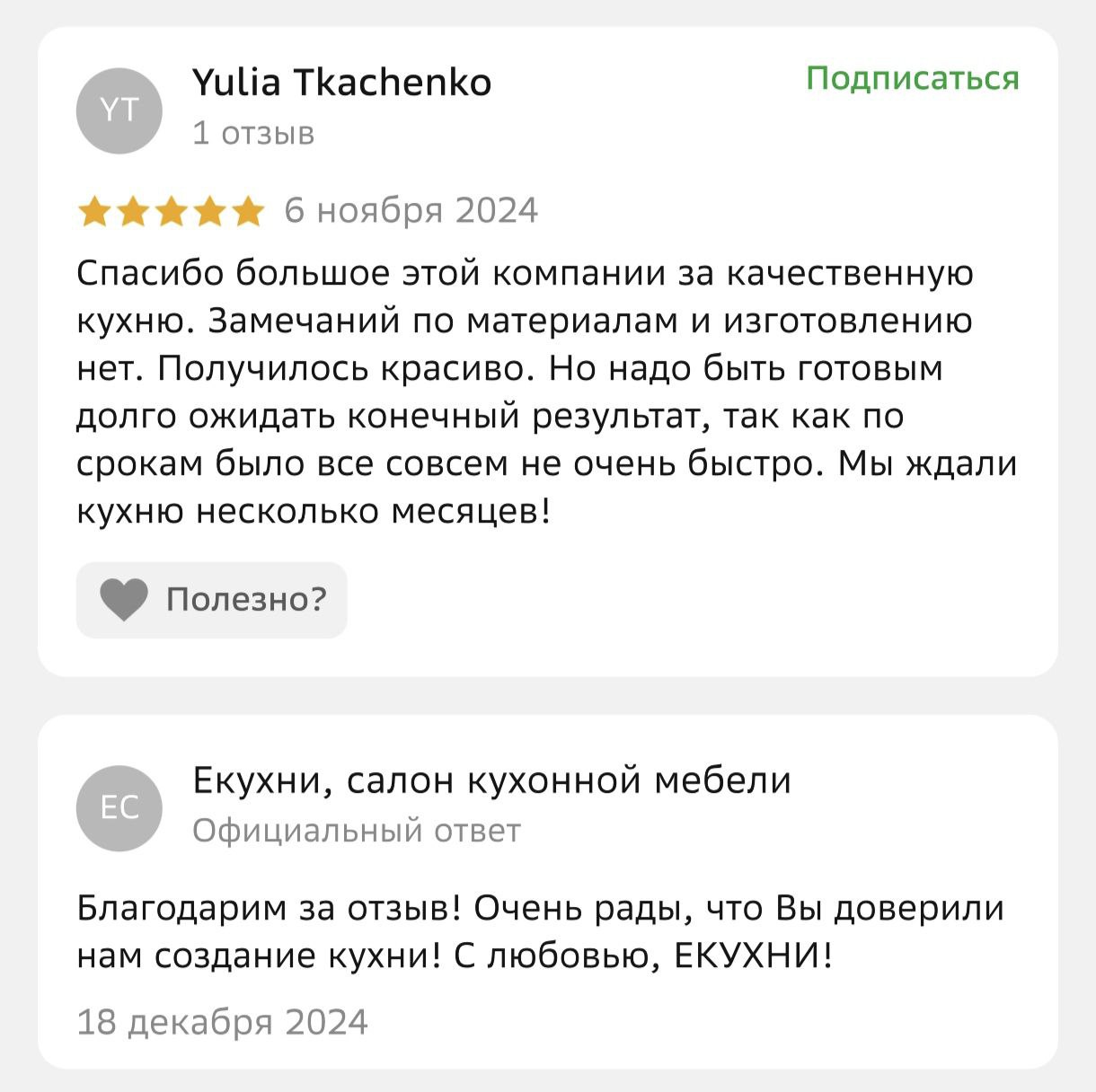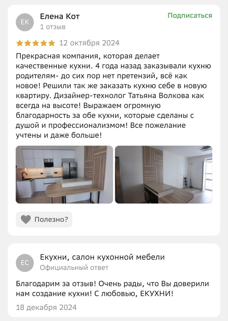 Наша семья будет рада каждому, кто обратится в компанию Екухни и станет нашим клиентом!