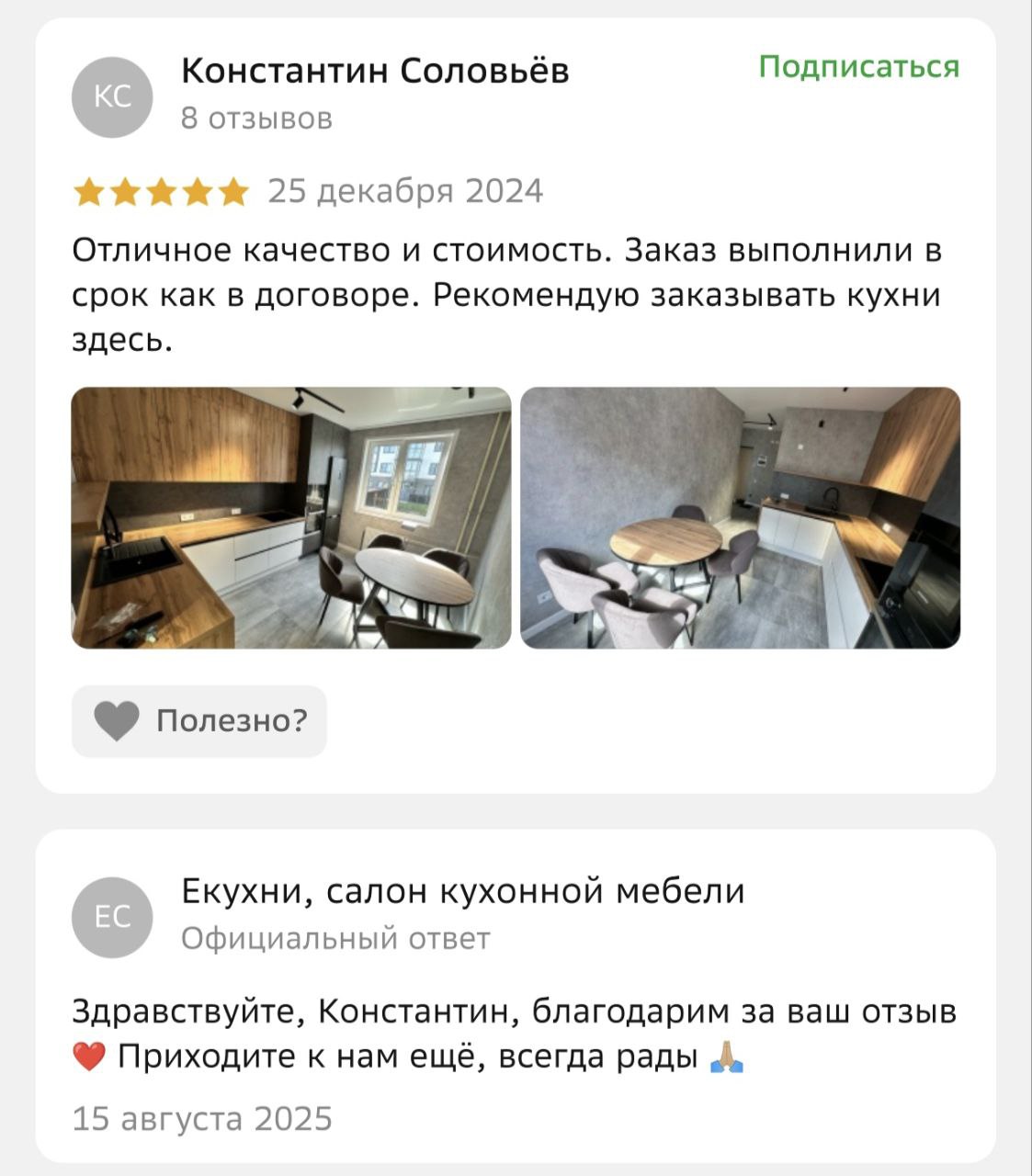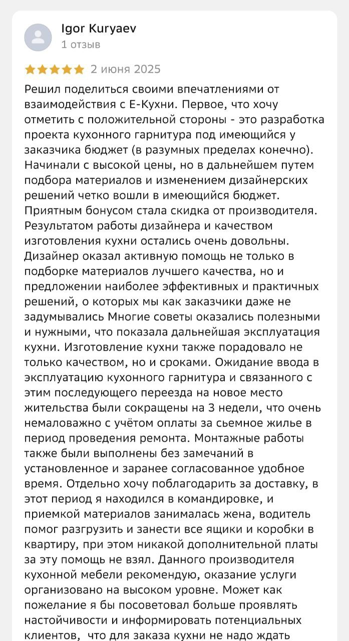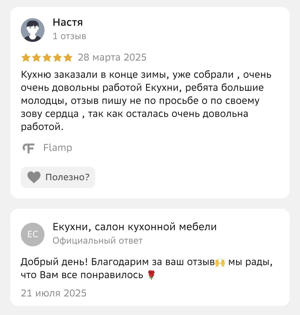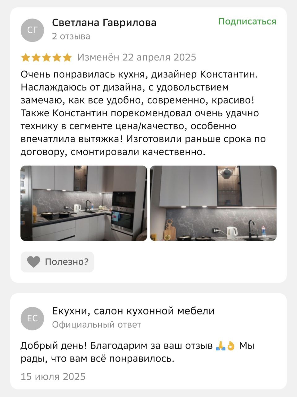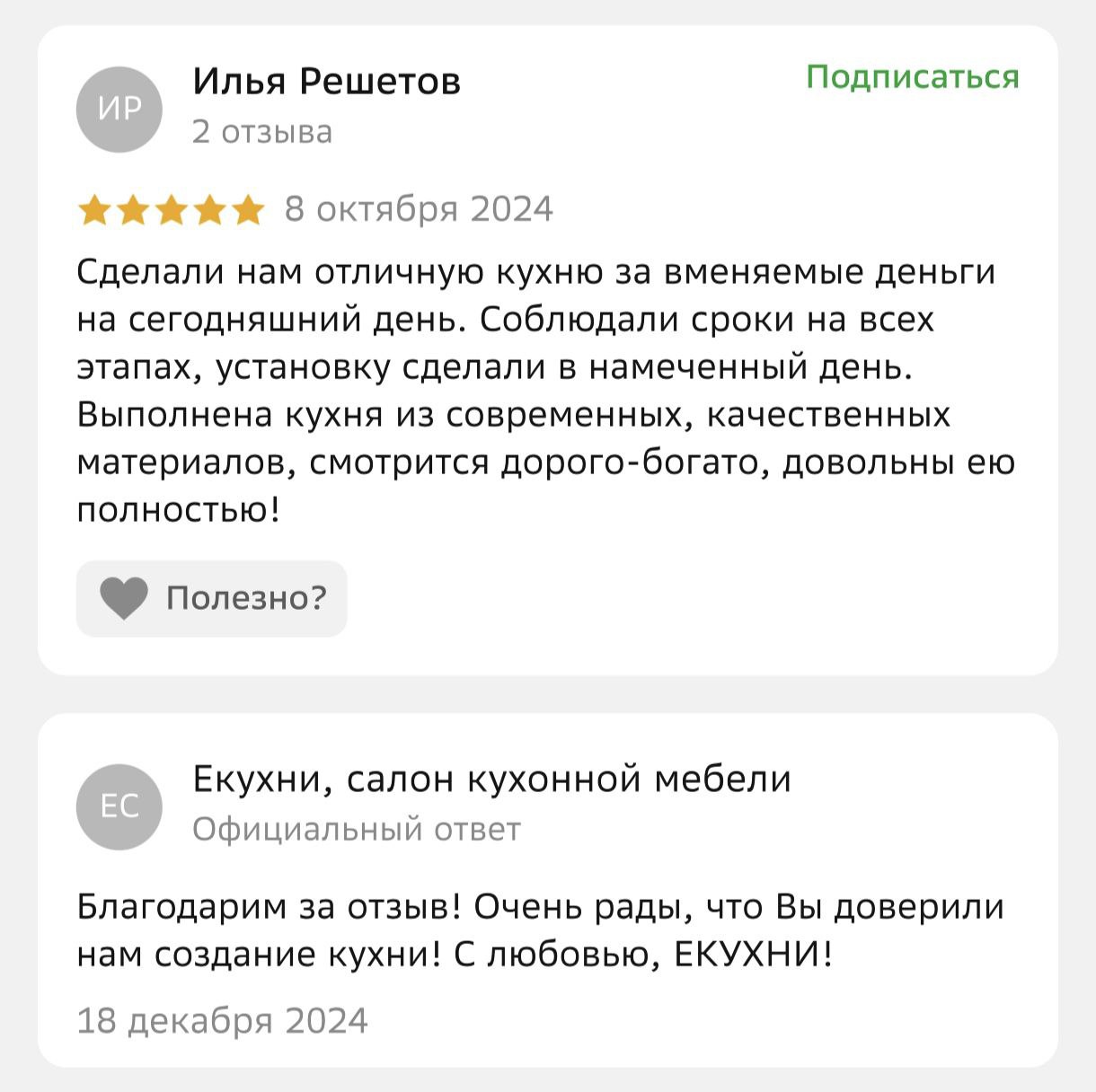 Наша семья будет рада каждому, кто обратится в компанию Екухни и станет нашим клиентом!